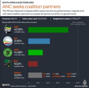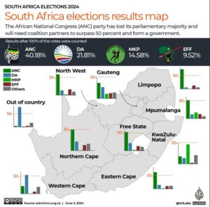 In terms of the coalition building that is already unfolding, the imperatives of the market are, again, the primary consideration. The questions being posed are: (a) how will the market react to an ANC coalition with the Democratic Alliance? (b) how will the market react to an alliance between Jacob Zuma’s MK, ANC and Julius Malema’s EFF?