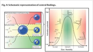 Left: Polyvalent antigen induces robust activation at both low and high stoichiometry, whereas monovalent antigen is only active at high stoichiometry, and small-molecule or small footprint monovalent antigen has no activity whatsoever. Right: The role of footprint in determining monovalent antigen activity. There is not a simple linear relationship between overall size and capacity for activation, rather, a combination of size and rigidity determines the degree of activation. IMAGE/ Aarhus University