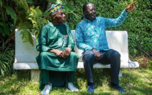 Opposition leader Raila Odinga with former Nigerian President Olusegun Obasanjo, who is campaigning for him to become African Union