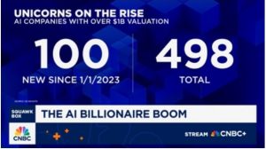 According to CNBC there are now 498 AI “unicorns,” or private AI companies with valuations of $1 billion or more, with a combined value of $2.7 trillion, according to CB Insights. Fully 100 of them were founded since 2023. There are more than 1,300 AI startups with valuations of over $100 million, the firm said.