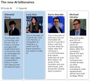 That’s boosted in part by blockbuster fundraising rounds this year for Anthropic, Safe Superintelligence, OpenAI, Anysphere and other AI startups, which have helped mint new billionaires.